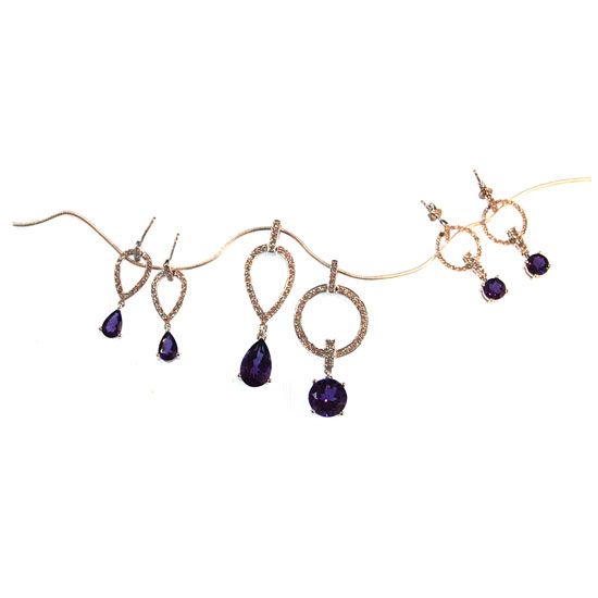 The alluring 18K white-gold jewelry series comprising pendants and earrings with sparkling diamond accents that offer irresistible beauty. The eye-catching gemstones are available in round and pear cutting for your option.
