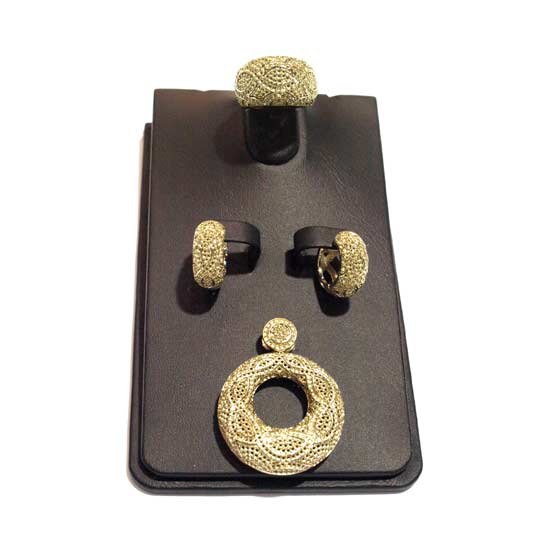 The shimmering jewelry set includes a pendant, a ring and a pair of earrings. Made of high-quality white gold, the jewelry items reflect stunning shine that is absolutely irresistible. The well-executed jewelry set is a great item to complement your jewelry collection.