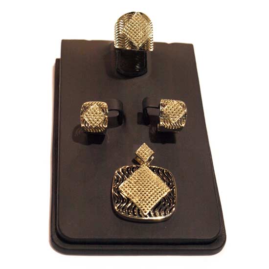 The enchanting jewelry set includes a pendant, a ring and a pair of earrings coming with wave-like patterns. Finely made of 18K white gold, the shiny jewelry items deliver a touch of glamor. They are prefect for enhancing your grand outfit.