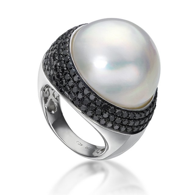 18K White Gold Mabe Pearl Ring with Diamond