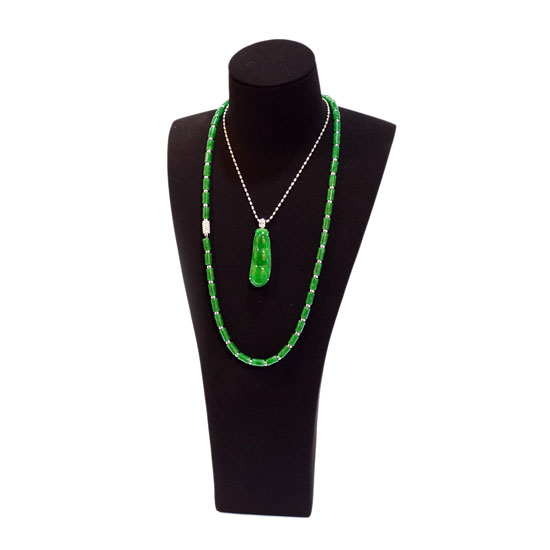 This is an 18K white gold necklace that is finely crafted with exquisite details. The allover natural jadeite gemstones highlight this elegant necklace. This gorgeous necklace makes an ideal addition to complete your jewelry box.