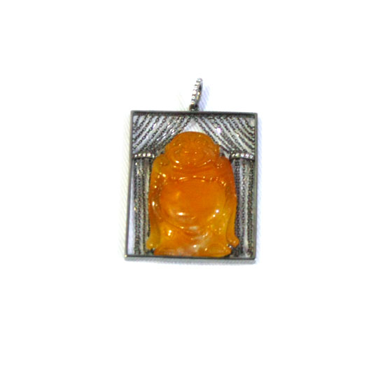 Showcased is a 18K white-gold pendant that delights you with its life-like Buddha design. The delicate yellow jade showcased excellent craftsmanship and attention to details.