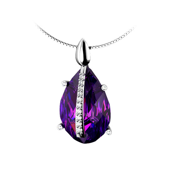 This is a necklace pendant finely carved from 18K white gold. The amethyst drop is adorned with white diamonds on top front and the side of the stone. It effortlessly steals the limelight at your evening function.