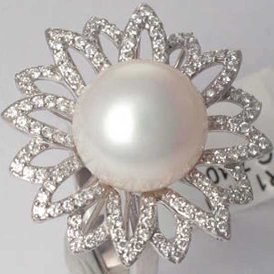 This brilliant ring comes stunningly with sparkling diamonds and a soft-hued pearl. The natural pearl is in perfect colors and luster, supported by a blossoming of diamond-paved petals. This ring radiates elegance in a hard-to-resist manner.