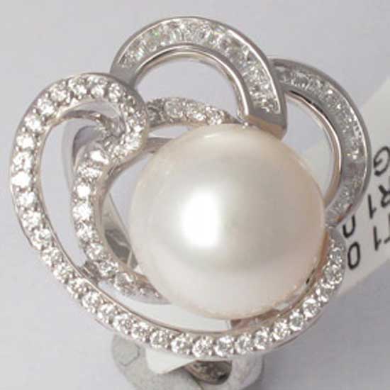 Available here is a ring designed with elegance and glamor. The ring employs a natural pearl in lustrous soft white for a touch of contemporary style. The pearl rests quietly in the embrace of sparkling diamonds. This ring is surely eye candy for ladies.