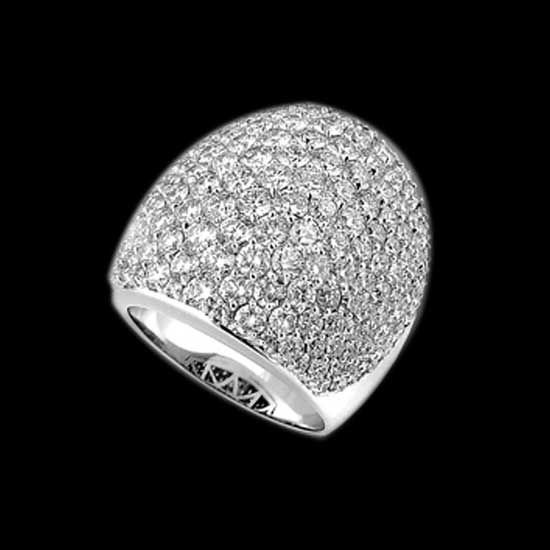 Featured here is a ring crafted in 18-karat white gold with diamonds. The ring is available in a simple design that underlines the idea of simplicity. The densely paved diamonds offer dazzling sparkles.