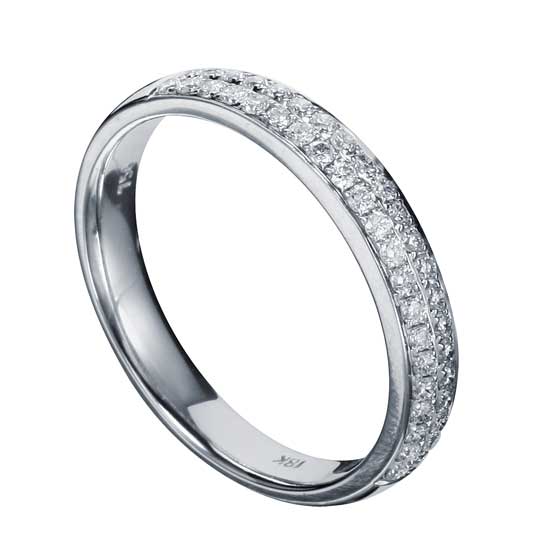This single-band ring is designed with a clean, neat and simplistic style. The exquisite construction is finished with 18K white gold and diamonds. This ring makes a nice adornment on your hand.