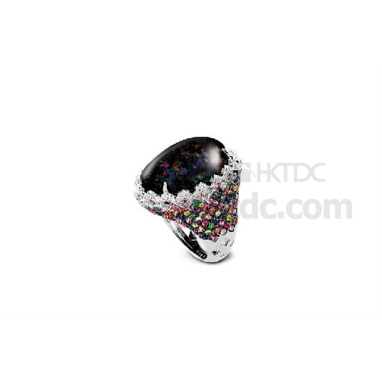 One needs to pay attention to discover the true beauty of the night. The sky is not only shades of black; it is dotted with glittering stars. Inspired by the peaceful allure of the starlight, the black opal ring radiates a calming energy.
