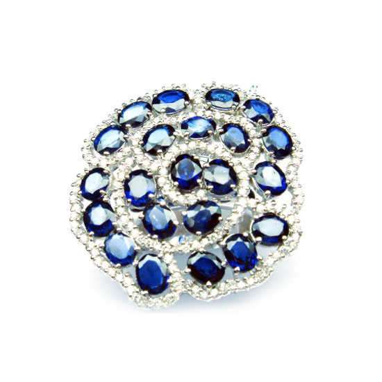 This is an elegant finger ring that is made of 18-karat white gold. It boasts a simple yet elegant floral appearance. The allover blue sapphire and shimmering diamonds accent this glamorous finger ring.