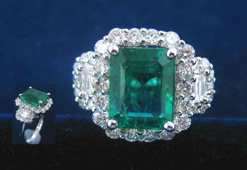 18K WHITE GOLD RING / EMERALD / DIAMOND