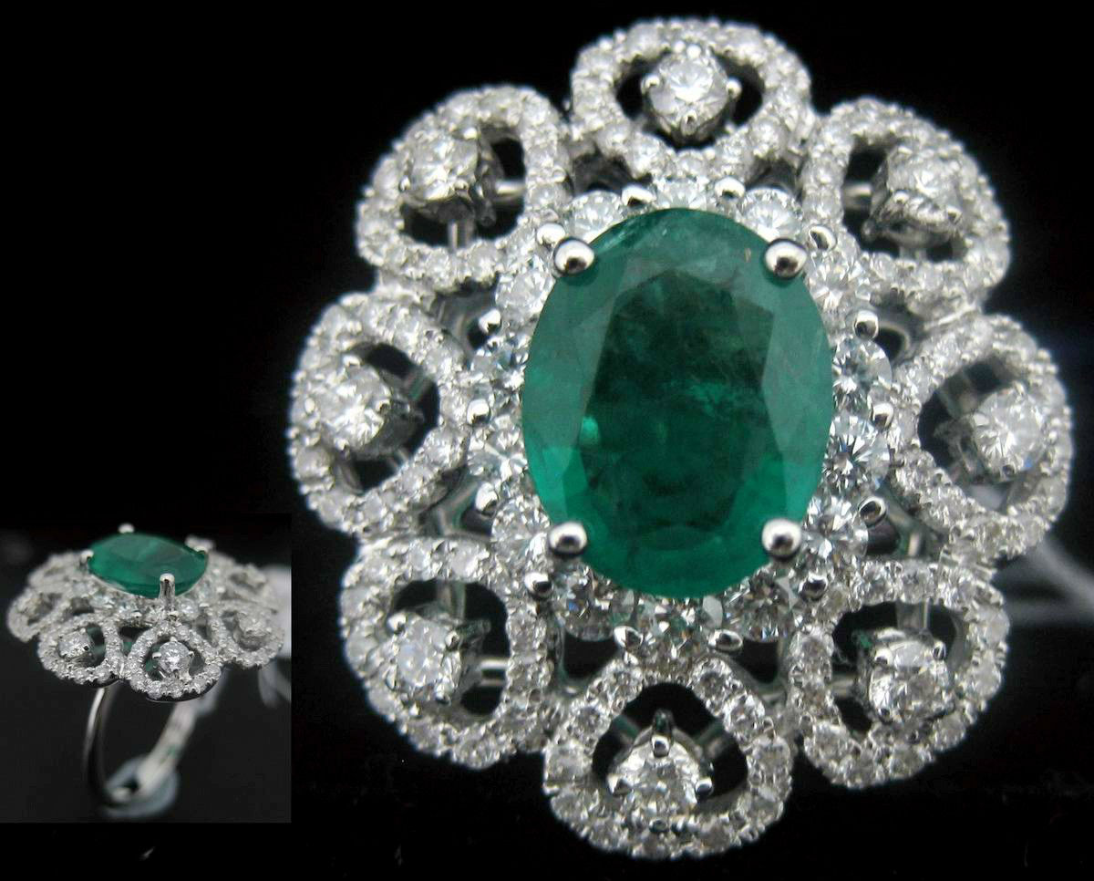 18K White Gold Ring / Emerald / Diamond