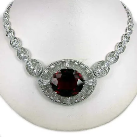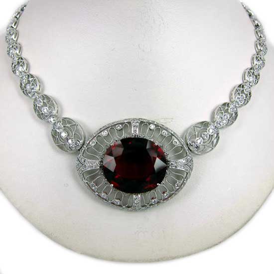 This showcased necklace presents a contemporary design with exquisite craftsmanship. It is finely made with stunning diamonds on the 18K white gold setting for added glamor. This 18K white gold necklace comes with a dazzling rubellite stone as the centerpiece for an eye-catching look.