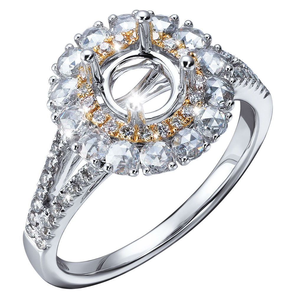 Impress your beloved wife by sending her a white gold semi-mount ring. Handcrafted to a high standard, the sophisticated ring features a four-prong setting for a firm grip of your selected gemstone. Adorned with scintillating diamonds around the center stone, the ring is bound to shine with exceptional brilliance.