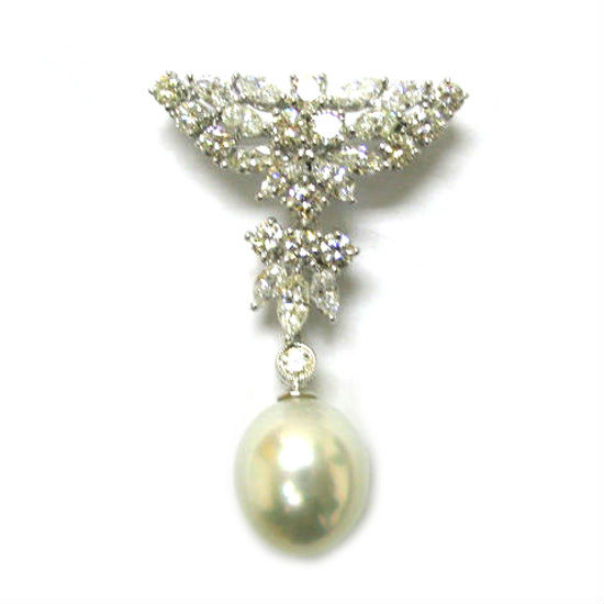 • 18k white gold south sea pearl pin/pendant set with marquise and brilliant round diamond