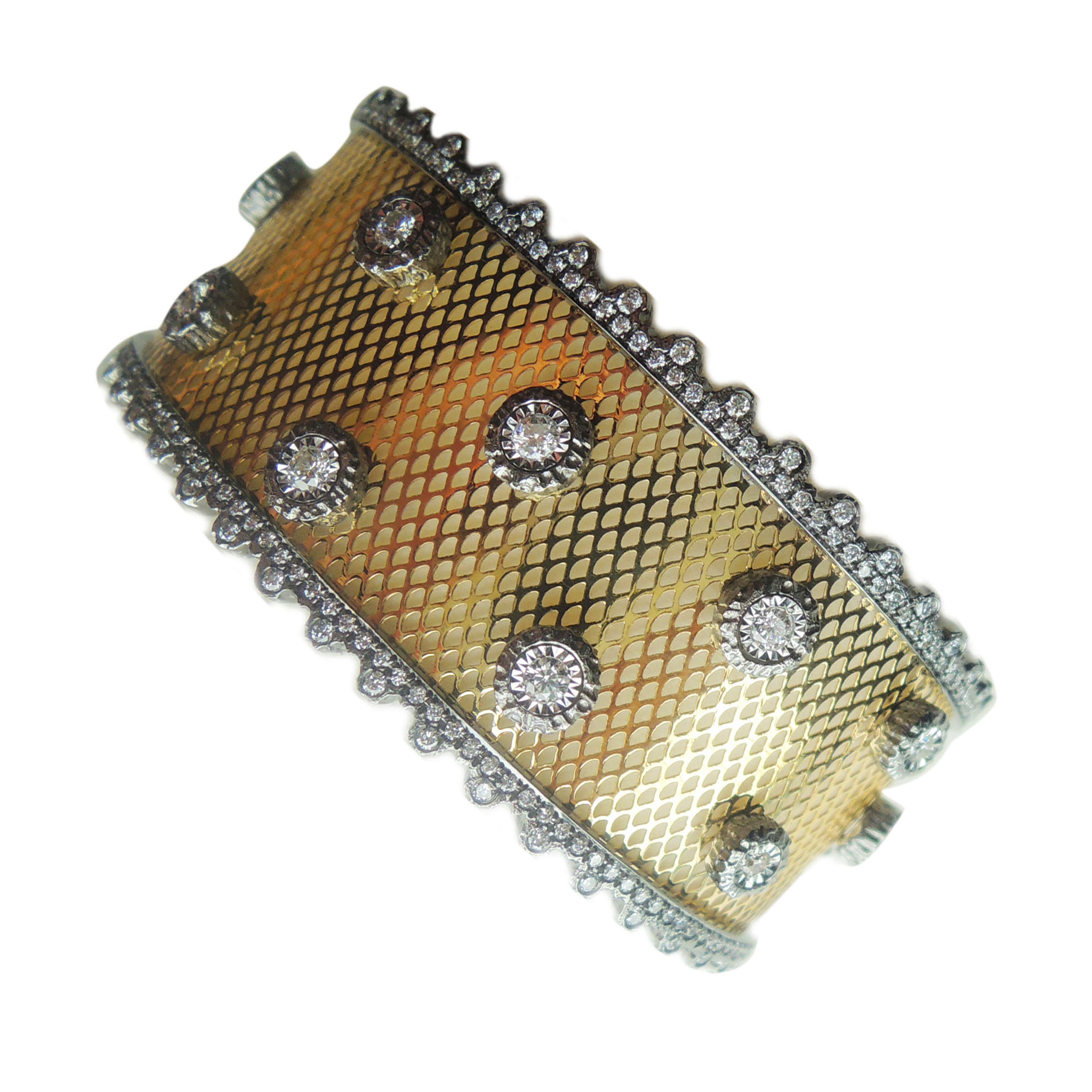 18K White/Yellow/Black Gold Mesh Diamond Bangle