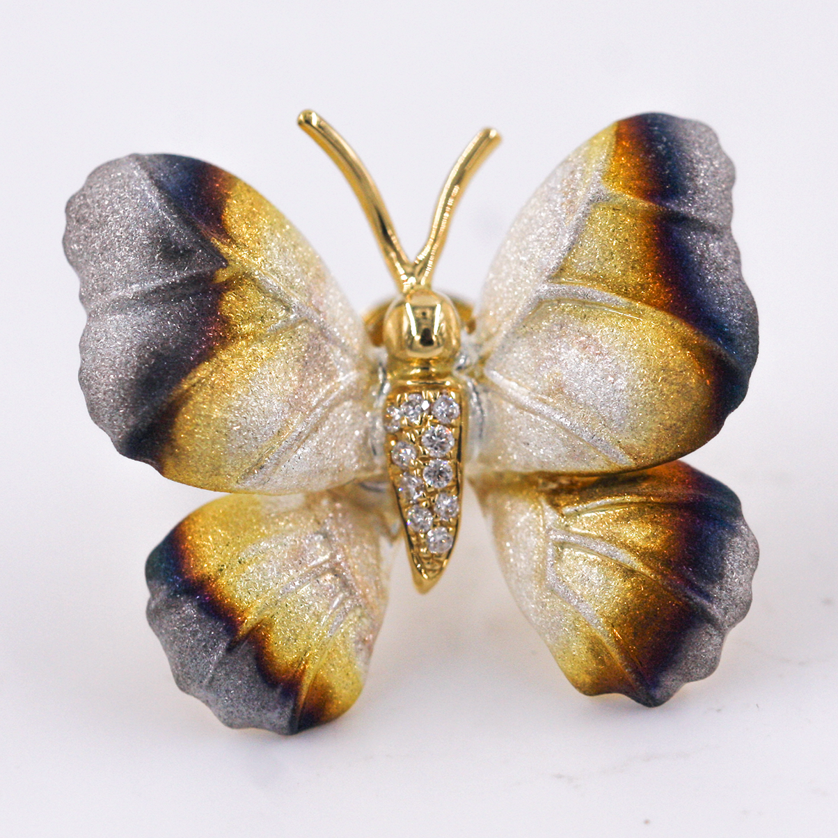 Item Type:EarringFeature: Butterfly shapeMaterial: 18 Yellow gold and diamonds.Treatment: Special colored gold process