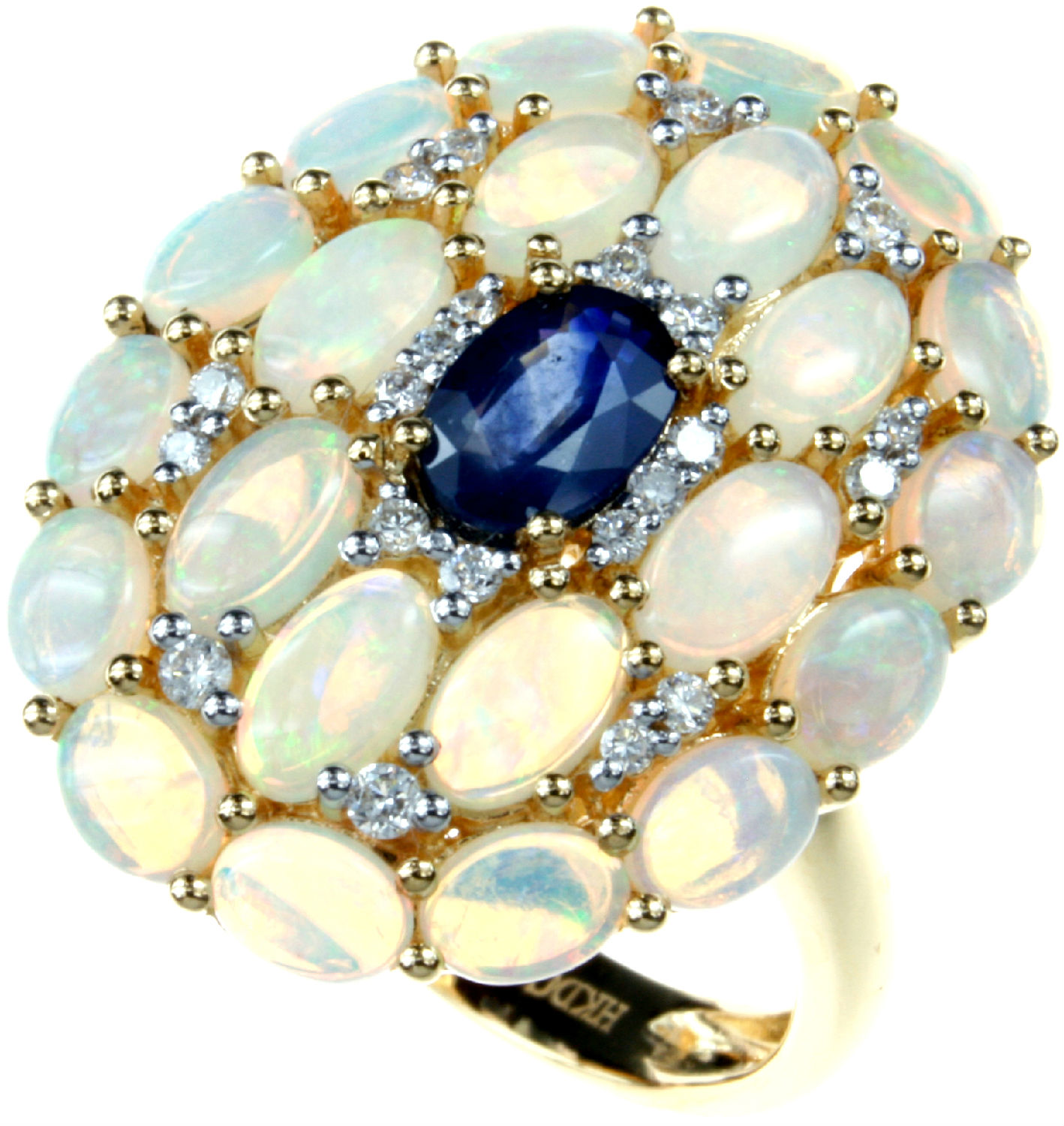 18K Yellow Gold Opal Sapphire Diamond Ring