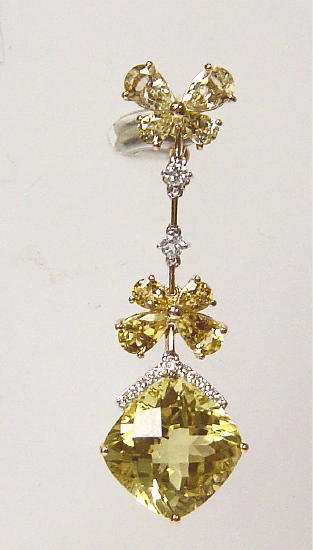 This gorgeous pendant features a dazzling 18K yellow gold construction. It comes with sparkling diamonds, lemon quartz, yellow beryl and aquamarines. This beautiful pendant is suitable for special occasions.