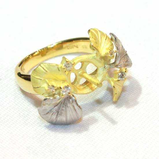 The dazzling 18K yellow gold ring features floral-shape accents. It is paved with pearls and South Sea pearls to give a lustrous look. Add a graceful touch to your hands with this charming ring.