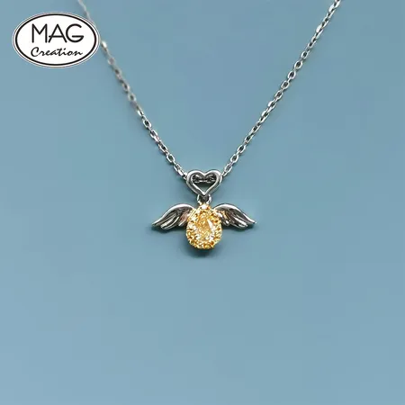 18K White Gold Pear Cut Natural Yellow Diamond Natural Diamond Angel Pendant on Necklace