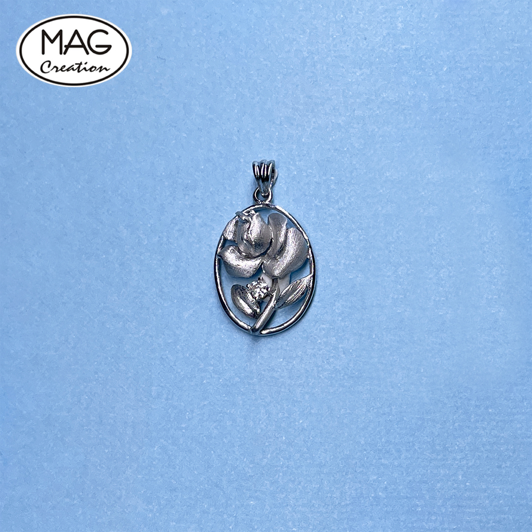 Love Legend Collection: 18K White gold Natural Diamond Rose Design Pendant