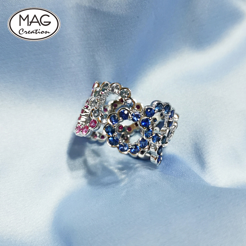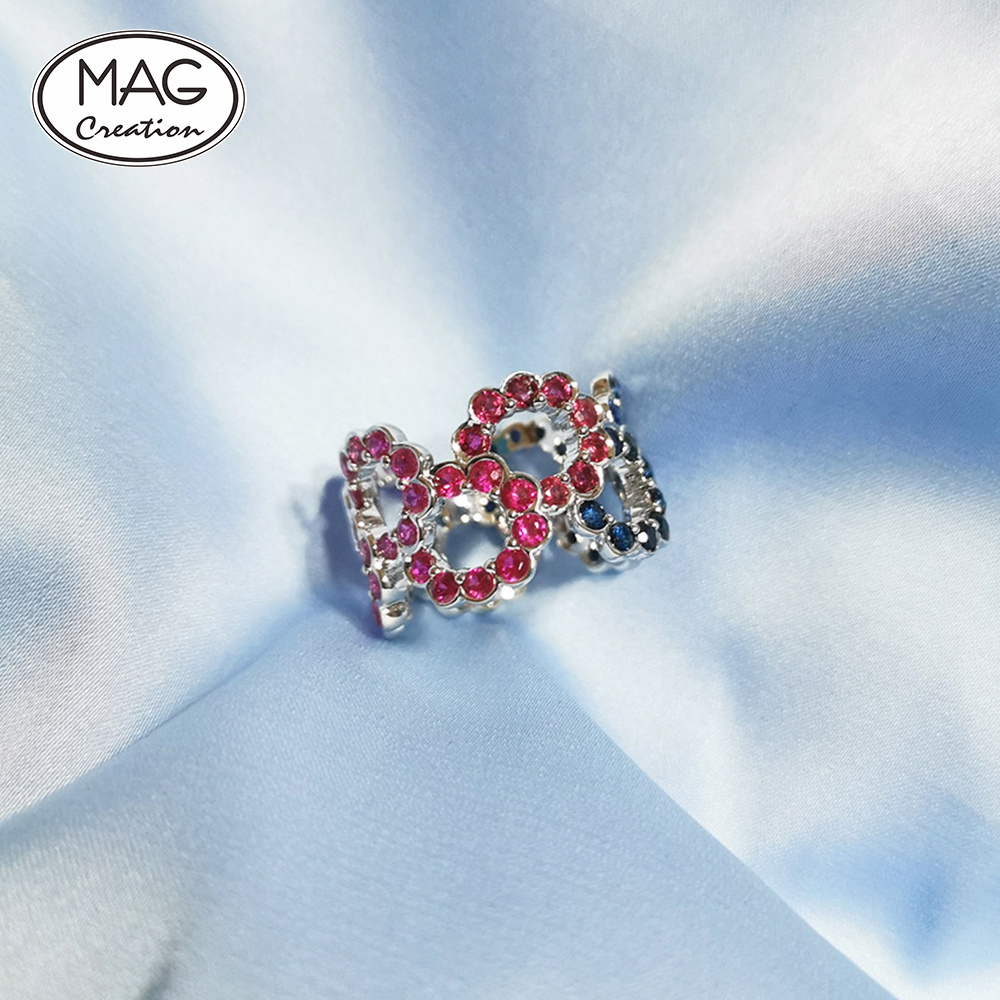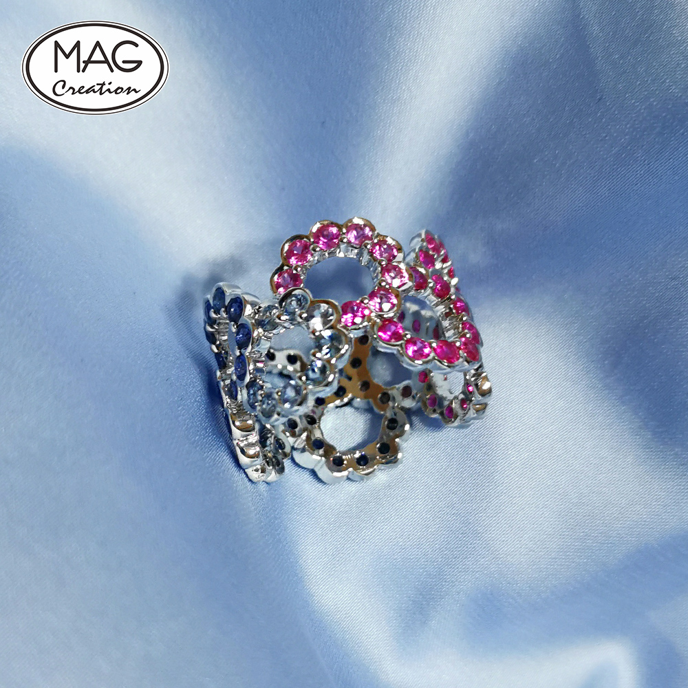 Special Circle Knots Design 18K Gold Ring w/ Sapphire from Pink to Blue in 10 circles