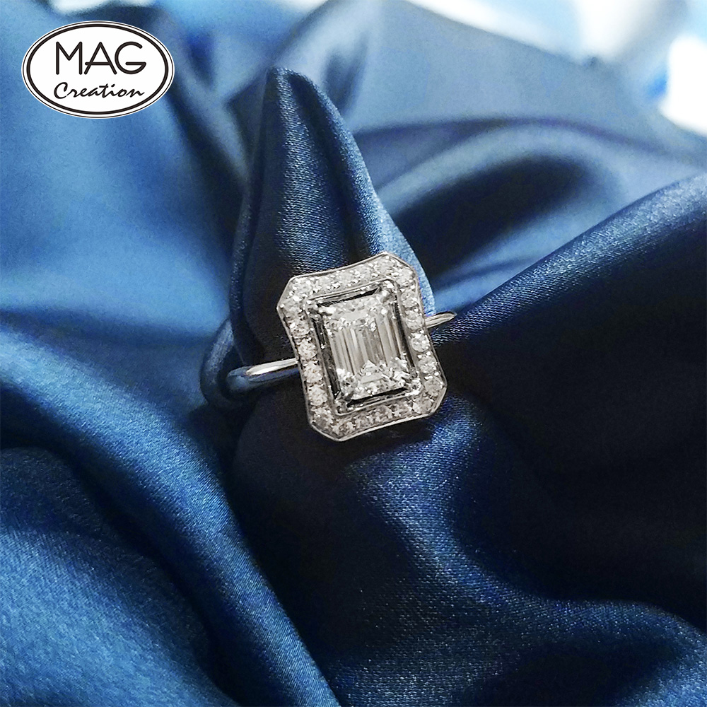 HALO Ring: 18K Gold 1.0ct Emerald Cut Diamond inside HALO