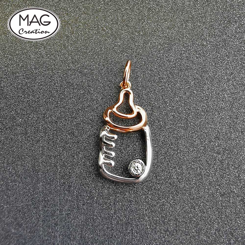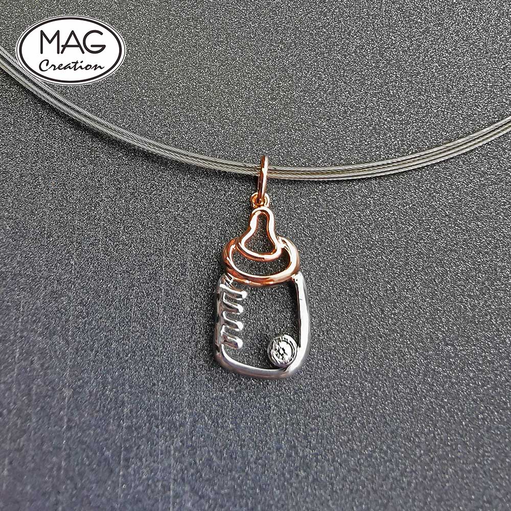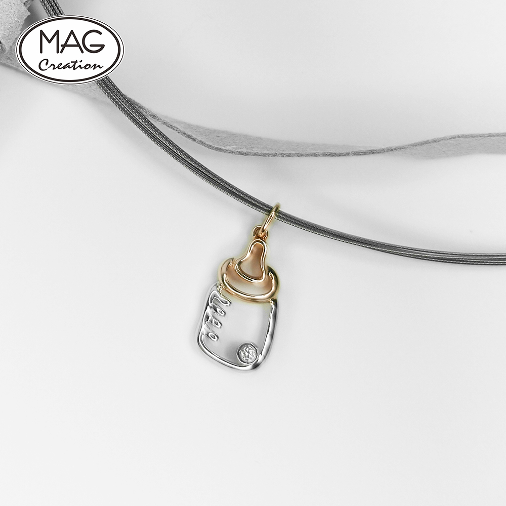 Cute trendy 18K gold natural Diamond Baby's milk bottle pendant