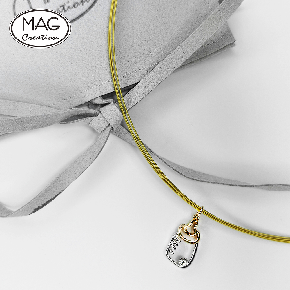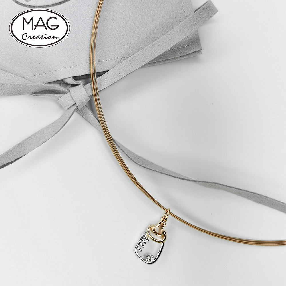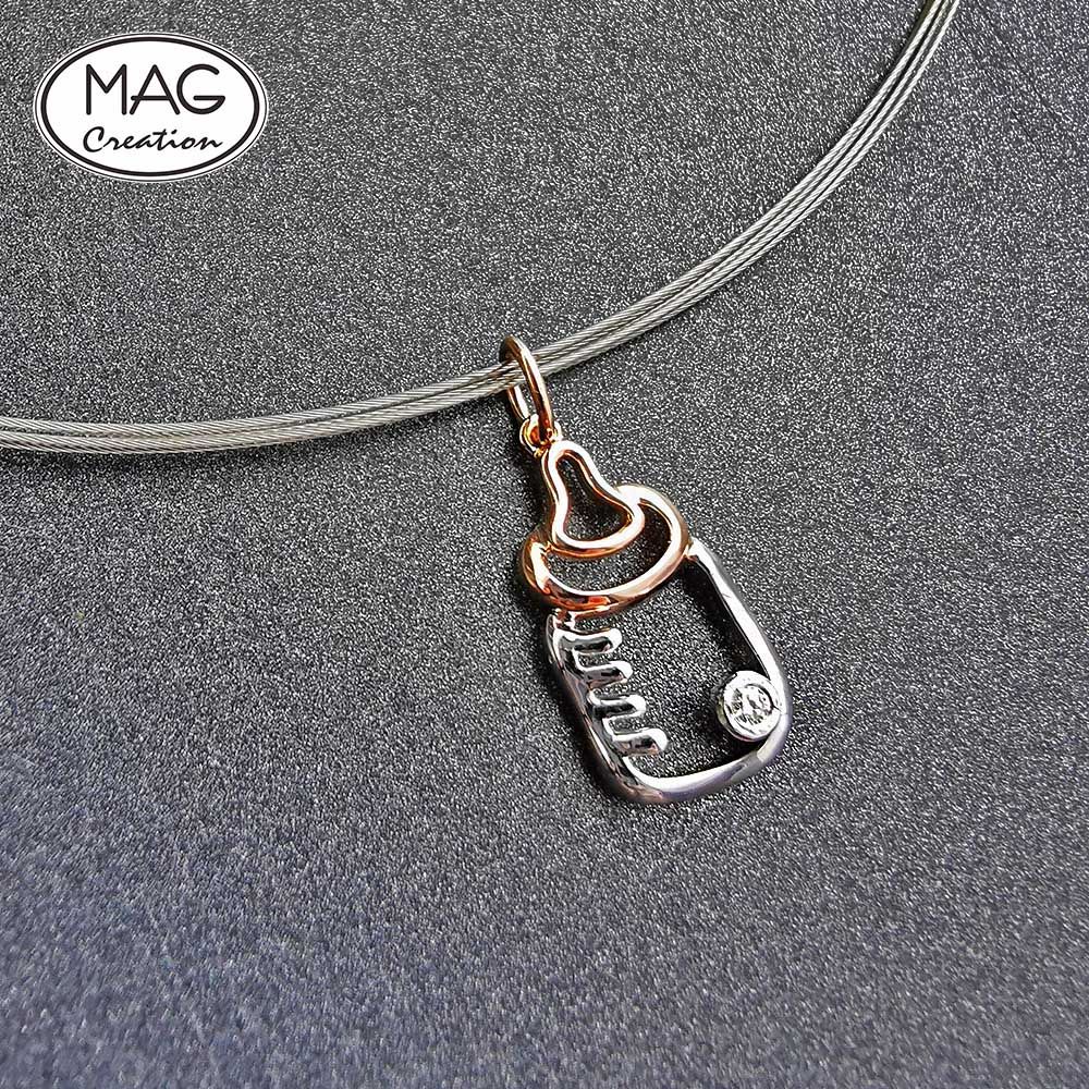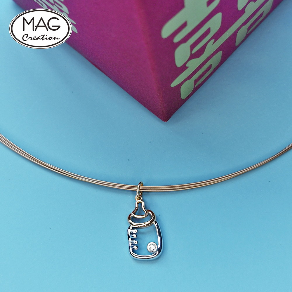 Cute trendy 18K gold natural Diamond Baby's milk bottle pendant