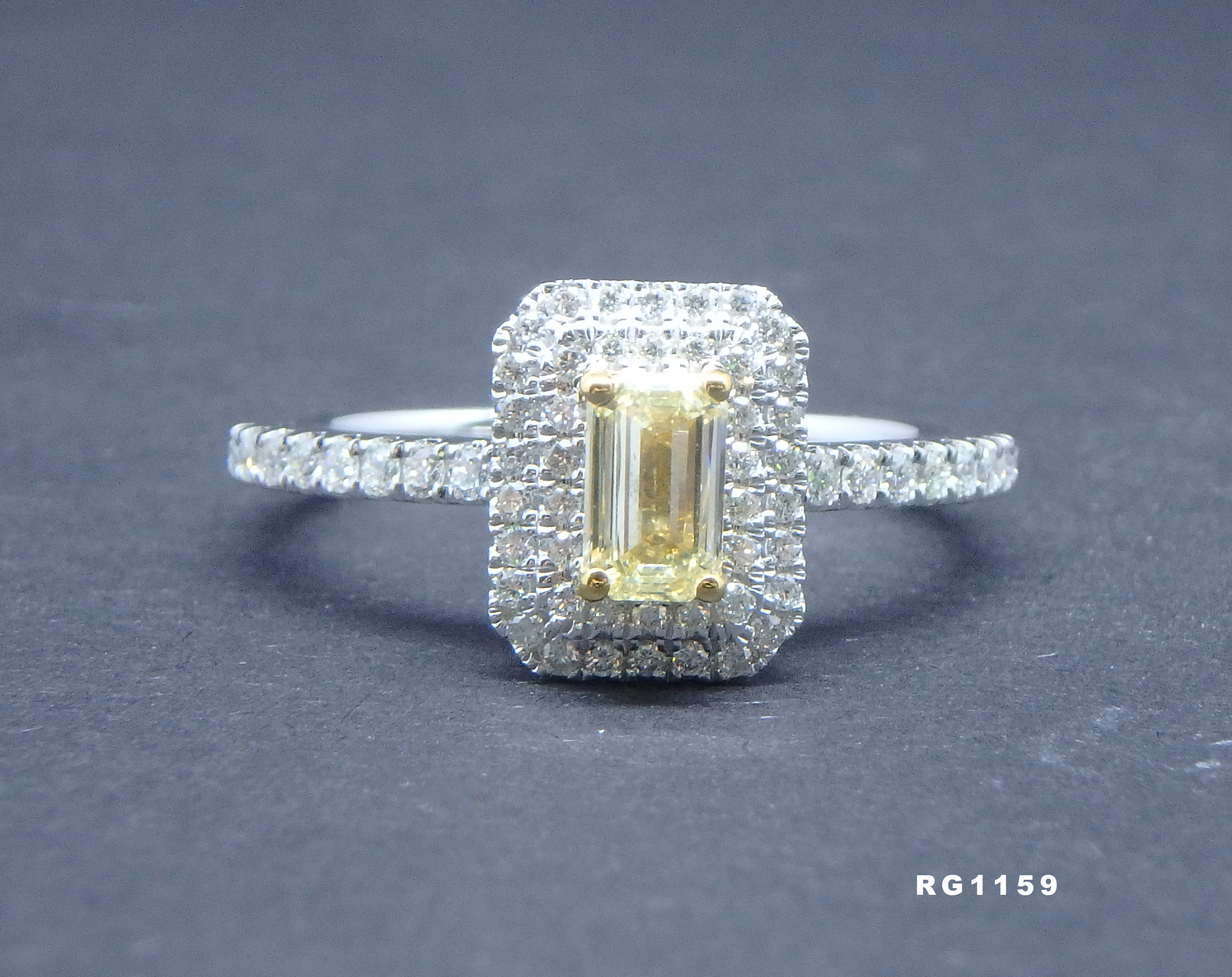 18K White gold and yellow gold emerald cut yellow diamond ring