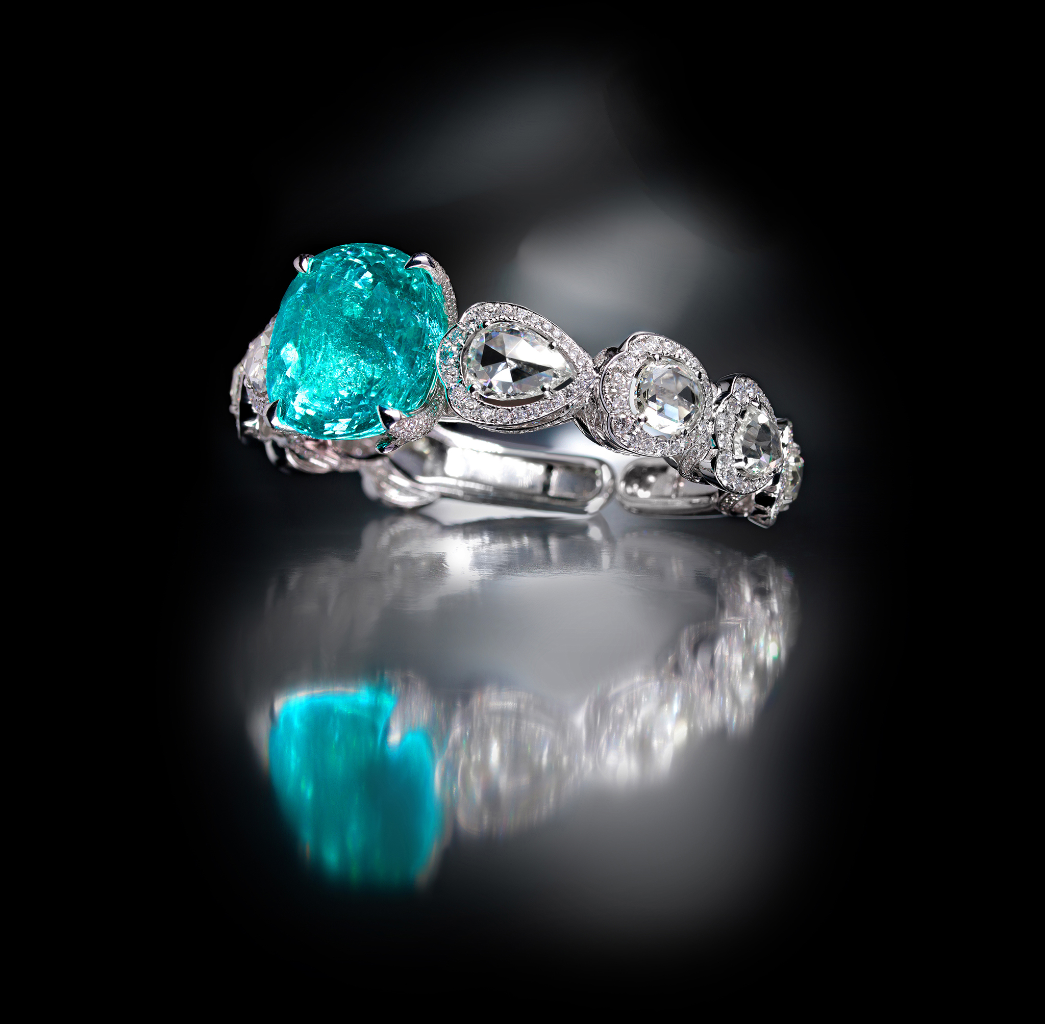 18KW Paraiba Tourmaline & Rose Cut Diamond Bangle