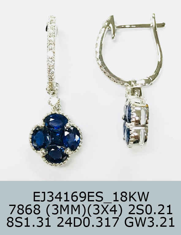• 18KW Sapphire Earring 24D0.31 2S0.21 8S1.31 GW3.21