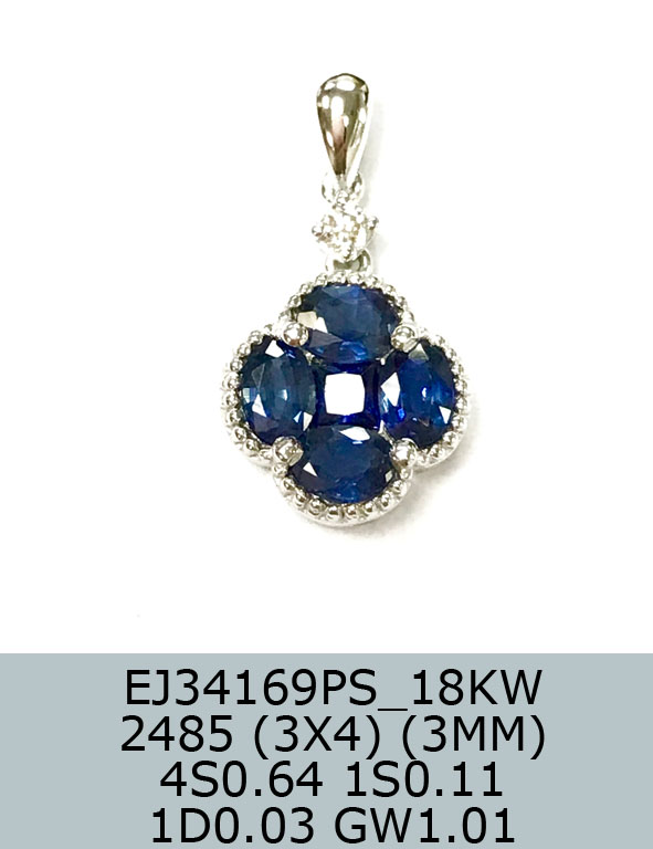• 18KW Sapphire Pendant 1D0.03 1S.011 4S0.64 GW1.01