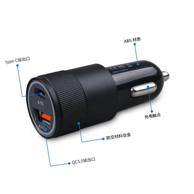 Hot 2 In 1 PD Type c + Quick Charge 3.0 31W Fast Dual USB Car Charger For iPhone For Samsung For Other Digital Devices