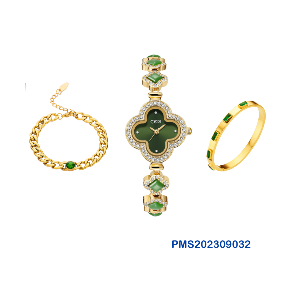 18k Gold Plated Fashion Quartz Watch Bracelet for Women Gift Set