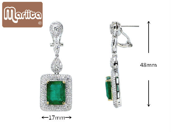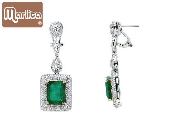 Emerald, a must have item for an admirer of classic jewelry. This emerald eardrops capture the light and emitting the brilliant rich green hue. The yellow gold prong at each corner makes this a truly sophisticated piece that you will treasure.