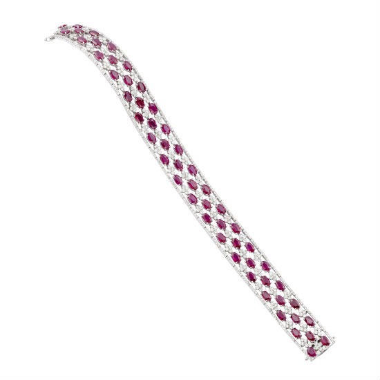 Available is a bracelet with precious 18k white gold construction. It is refined with select rubies and diamonds, which give alluring brilliance. This bracelet will sure line your wrist with unspoken elegance and class.