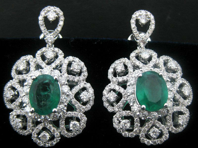 18K WHITE GOLD EARRING / EMERALD / DIAMOND
