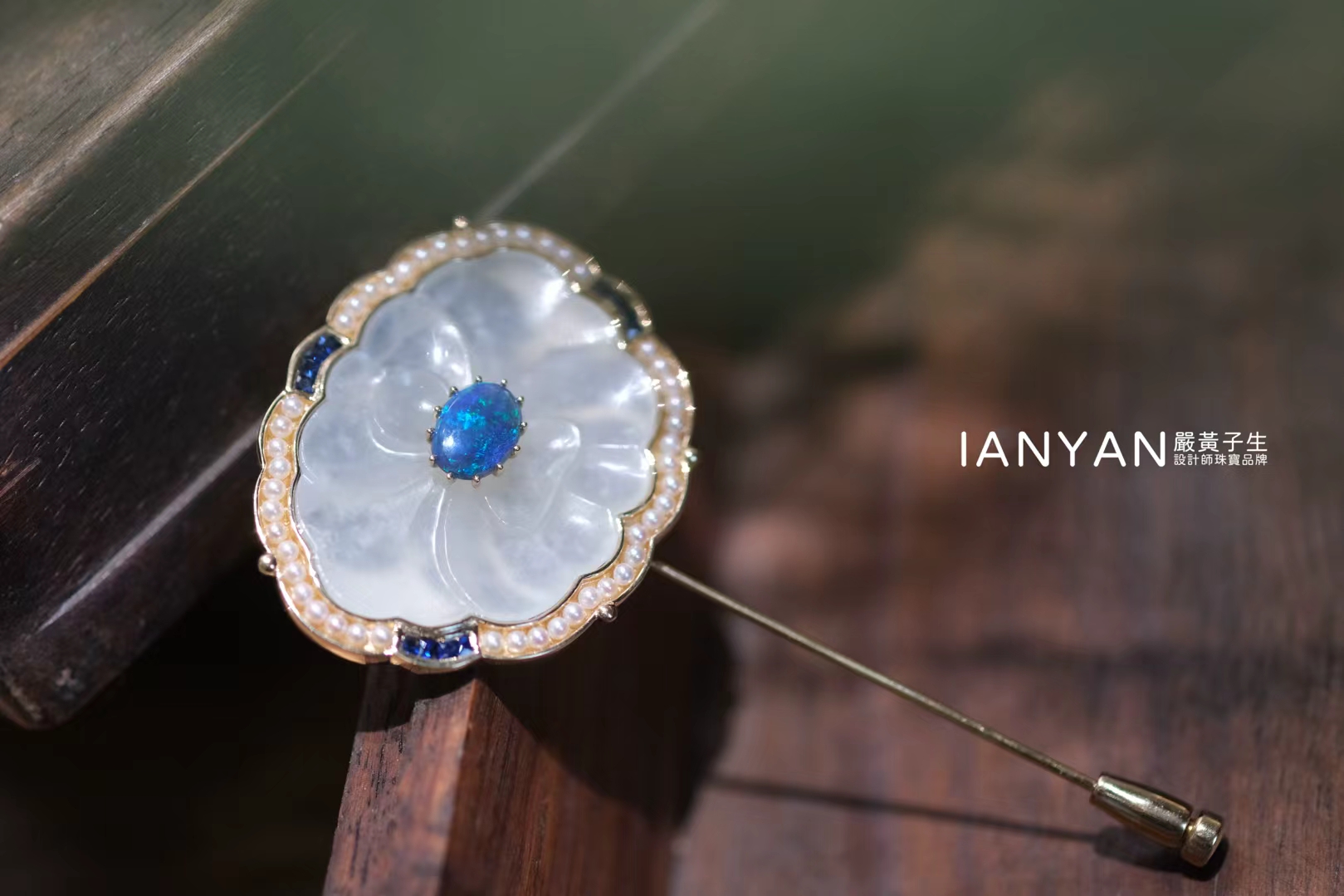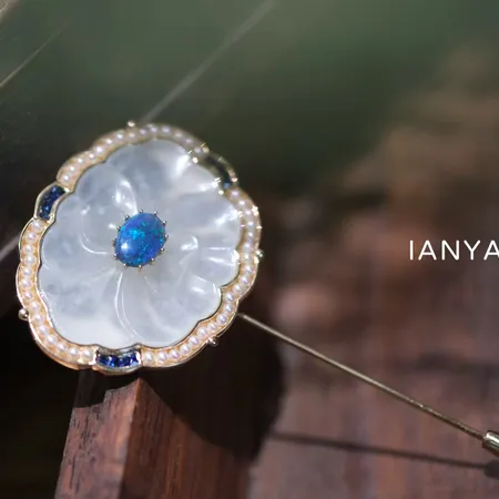 The vintage Hetian white jade flower plaque embodies the profound heritage of Chinese culture.- The iridescent glow of Western opal adas a touch of youthful fashion.