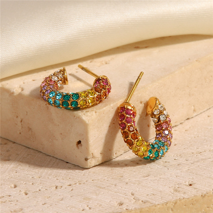 18k gold plated stainless steel Stud earrings for women C shaped earrings color zircon earrings