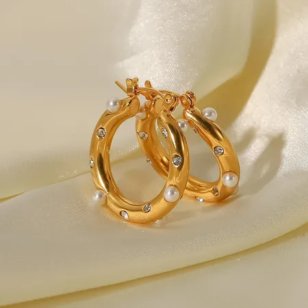 18k gold plated stainless steel hoop earrings for women big circle shaped earrings zircon pearl earrings