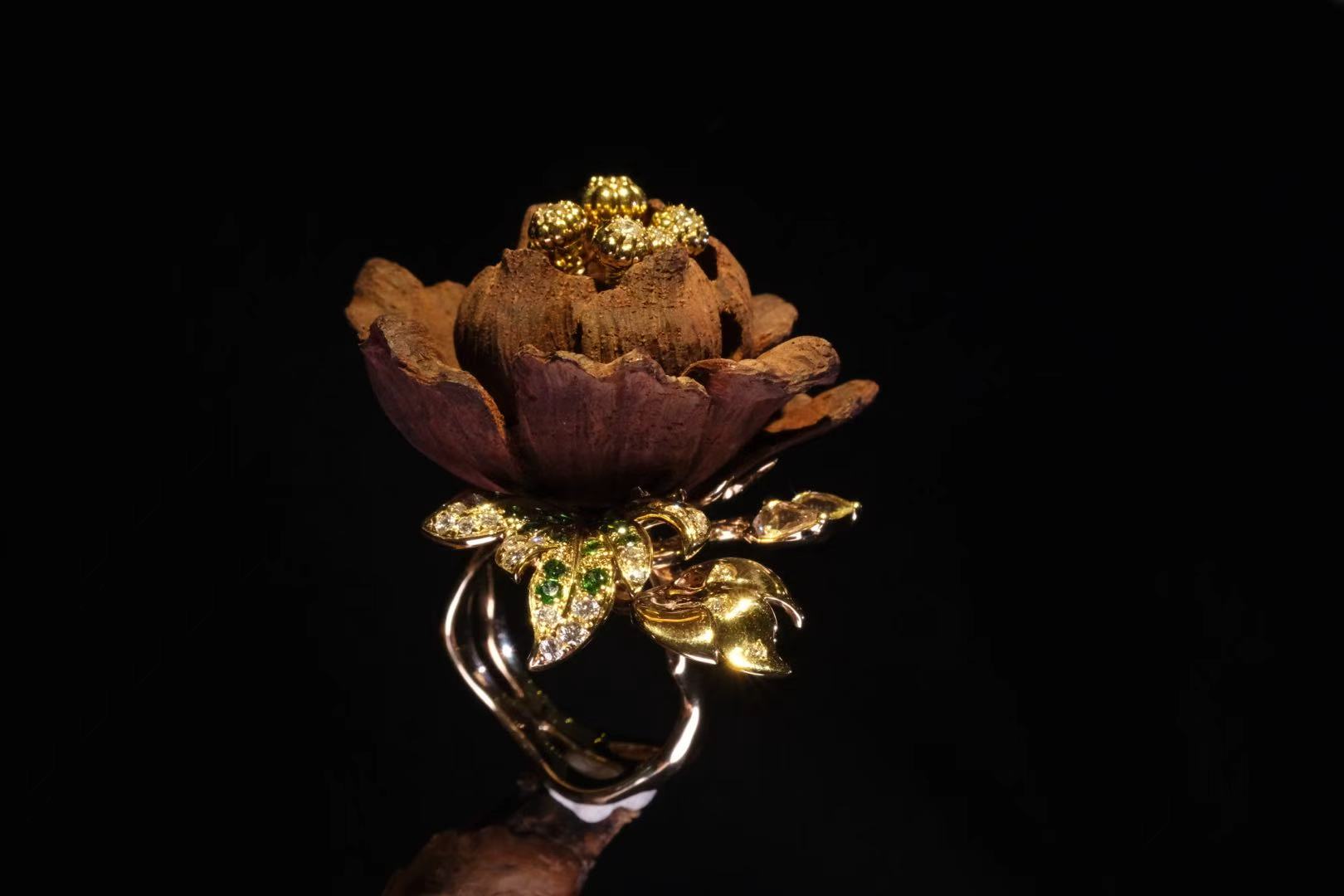 18k gold stone-set brooch, precious metal: 18k gold, remarks : set with diamonds and garnets , brand: IANYAN
