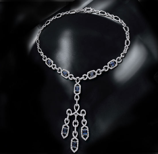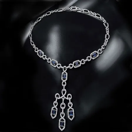 18kw Diamond Necklace With Blue Sapphire