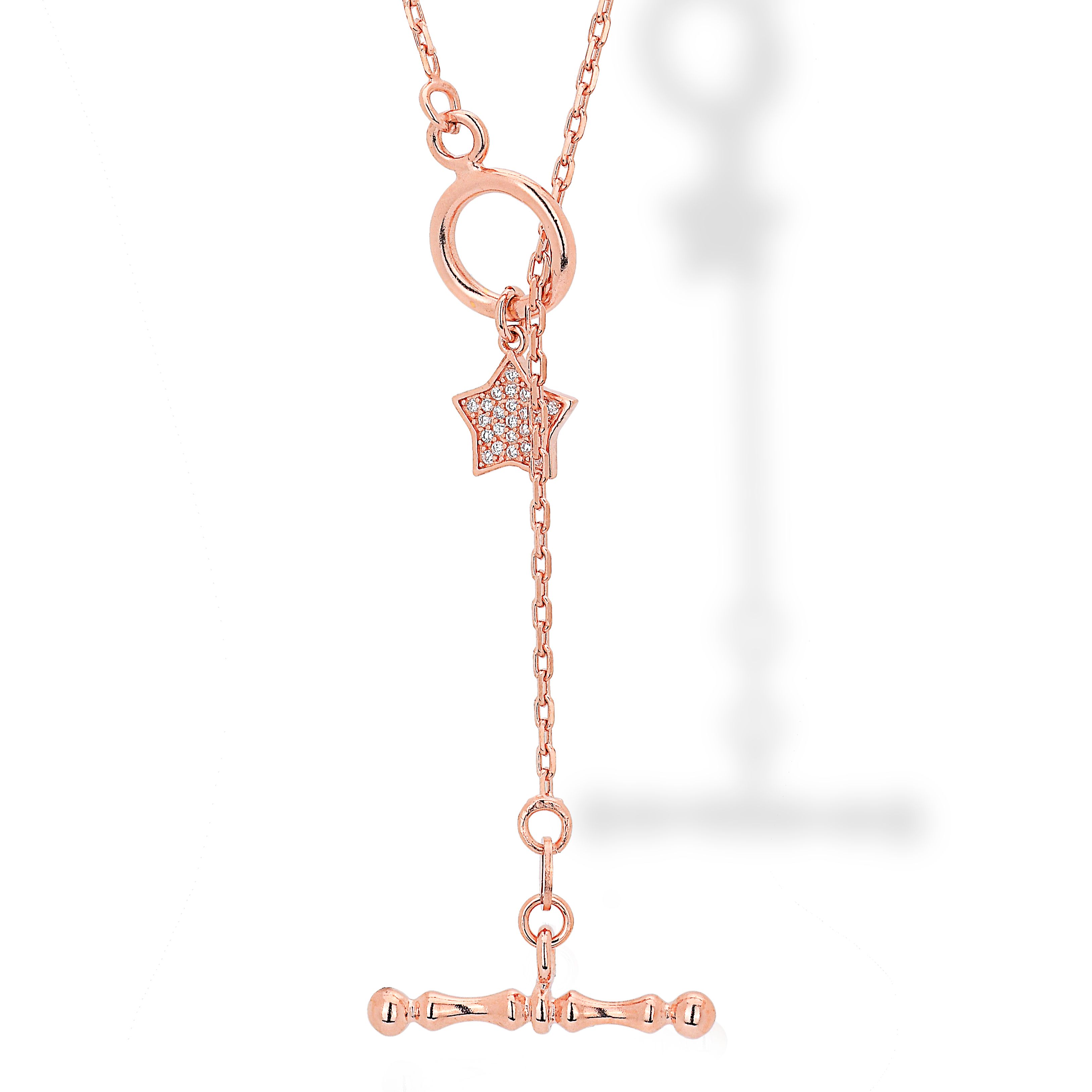 sparkling cable chain with cibic zirconia pendant "STAR" and T-bar to satisfy everybody's request!