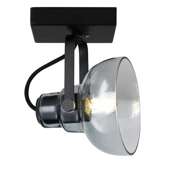 1Lt Spot Light Square,Material:Metal+Glass,Bulb:1x E27 Max.40W, Product Size:Ø142×H210mm, Shade size:Ø142×130mm,Colour:Black + smoke glass ,or Gold + Black metal parts / Cognac glass,or Black + Clear glass,Packing:white box+colour label