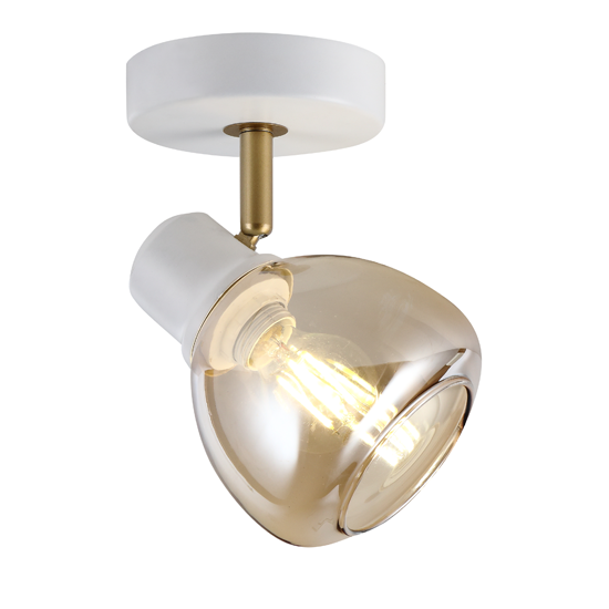 1Lt Spot Light Round, Material:Metal+Glass ,Bulb:1x E14 Max.40W, Product Size:L100*W100*H155mm, Colour:matt white + sandy gold , Packing:white box+colour label