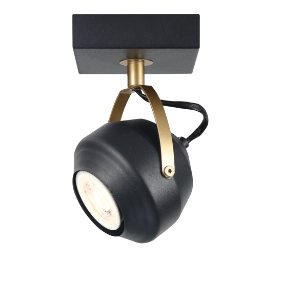 1Lt Spot Light Square, Material:Metal,Bulb:1x Gu10 Max.35W, Product Size:L90*W90*H155mm,Colour:matt black+sandy gold, Packing:white box+colour label