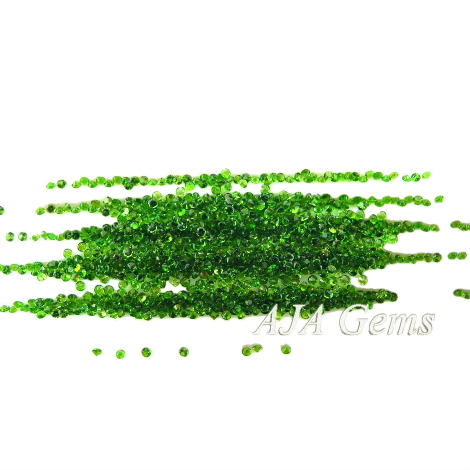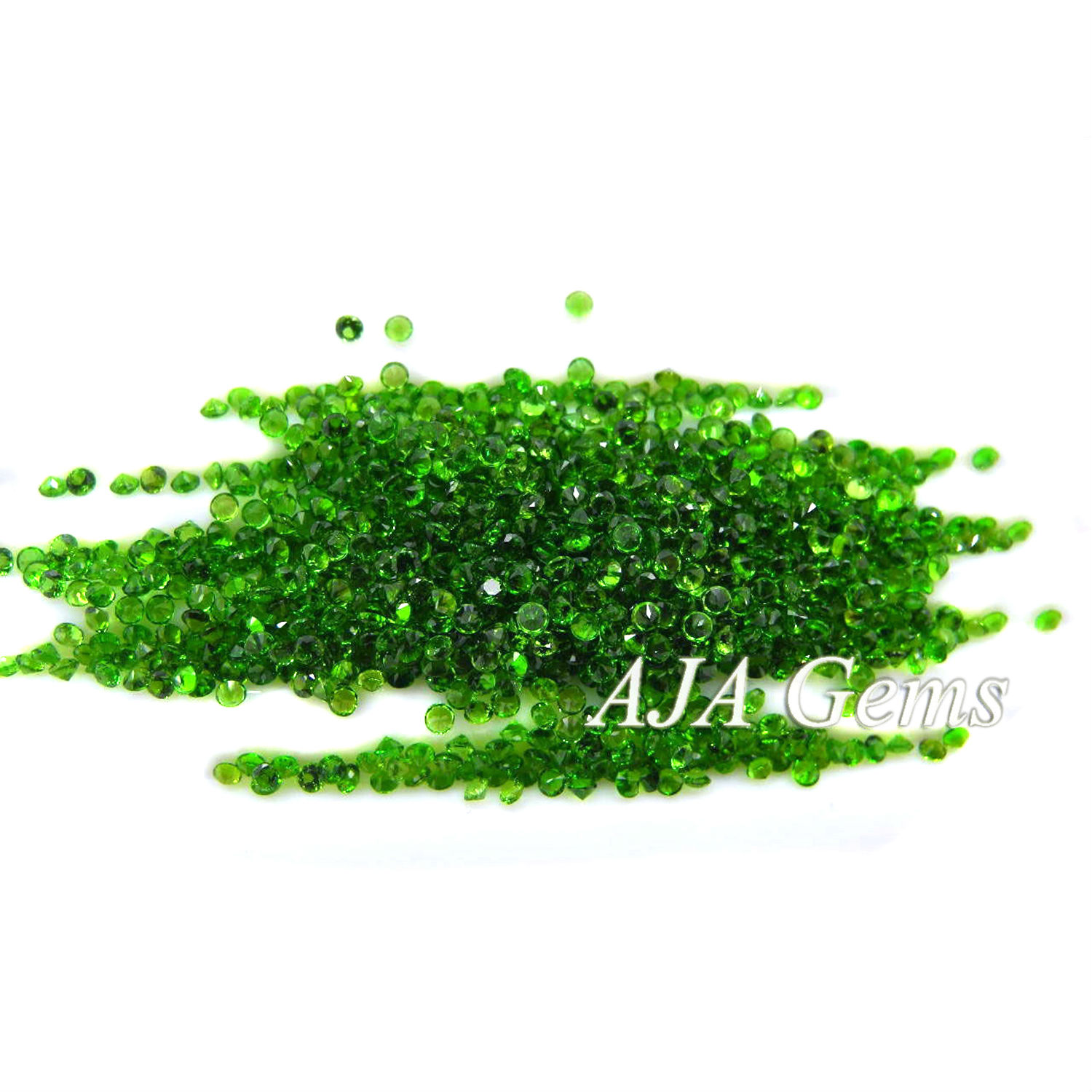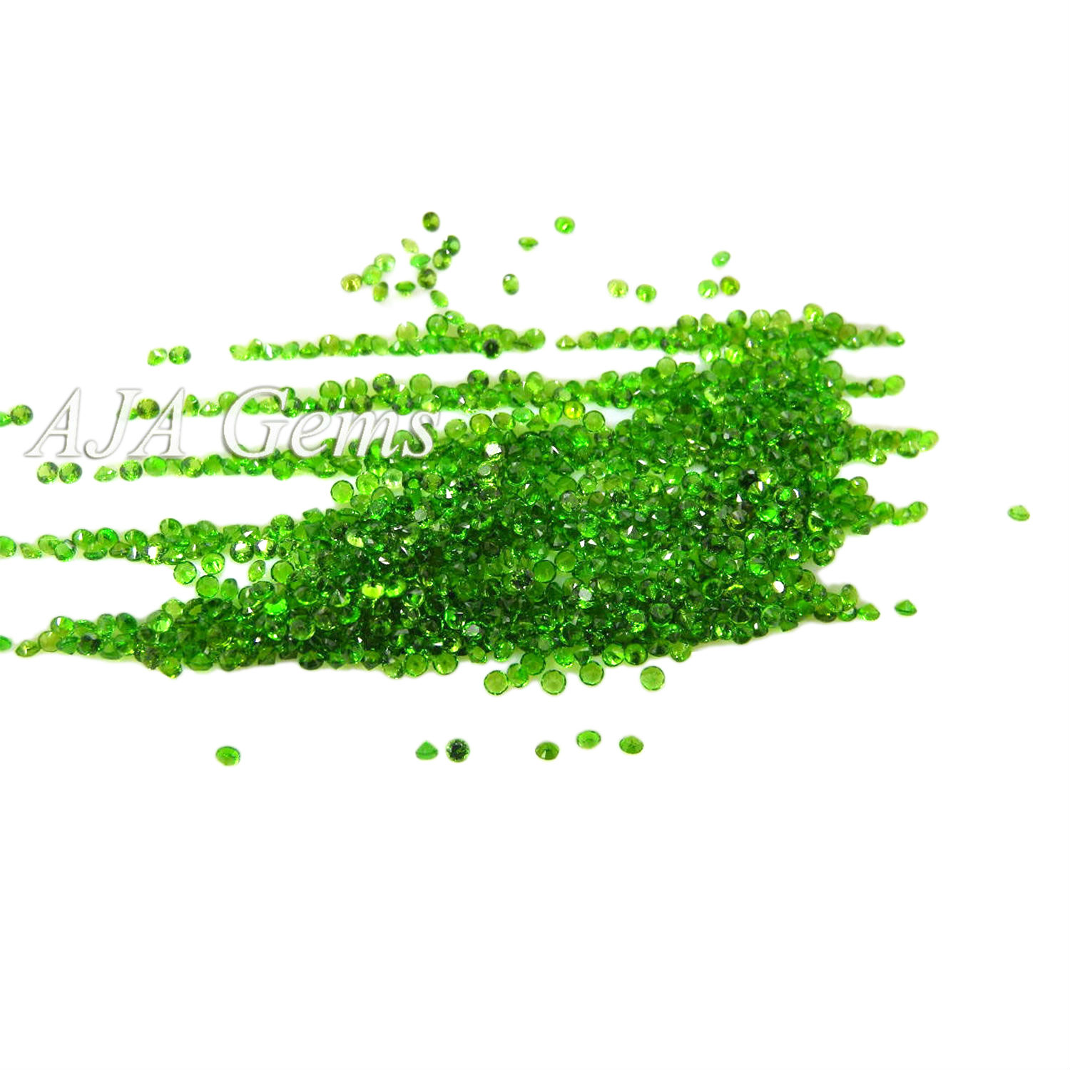 Our chrome diopside gemstones rough is from russia, we produce a lot faceted chrome diopside and have a lot finished goods in inventory. It is cut mainly into calibrated sizes, such as, round 0.9mm,1mm,1.25mm,1.5mm,1.75mm,2mm,2.25mm,2.5mm,2.75mm,3mm,3.5mm, 4mm,5mm,6mm,7mm,8mm,9mm,10mm etc. We separate the quality to 3a, aa, a, we can make round brilliant cut, round cabochon cut, round checkerboard cut, round normal faceted cut.