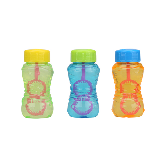 A tray of 3 1oz bottles of bubbles solution, complete with individual bubble wands & 3 colors asst.(Orange,Blue,Green)