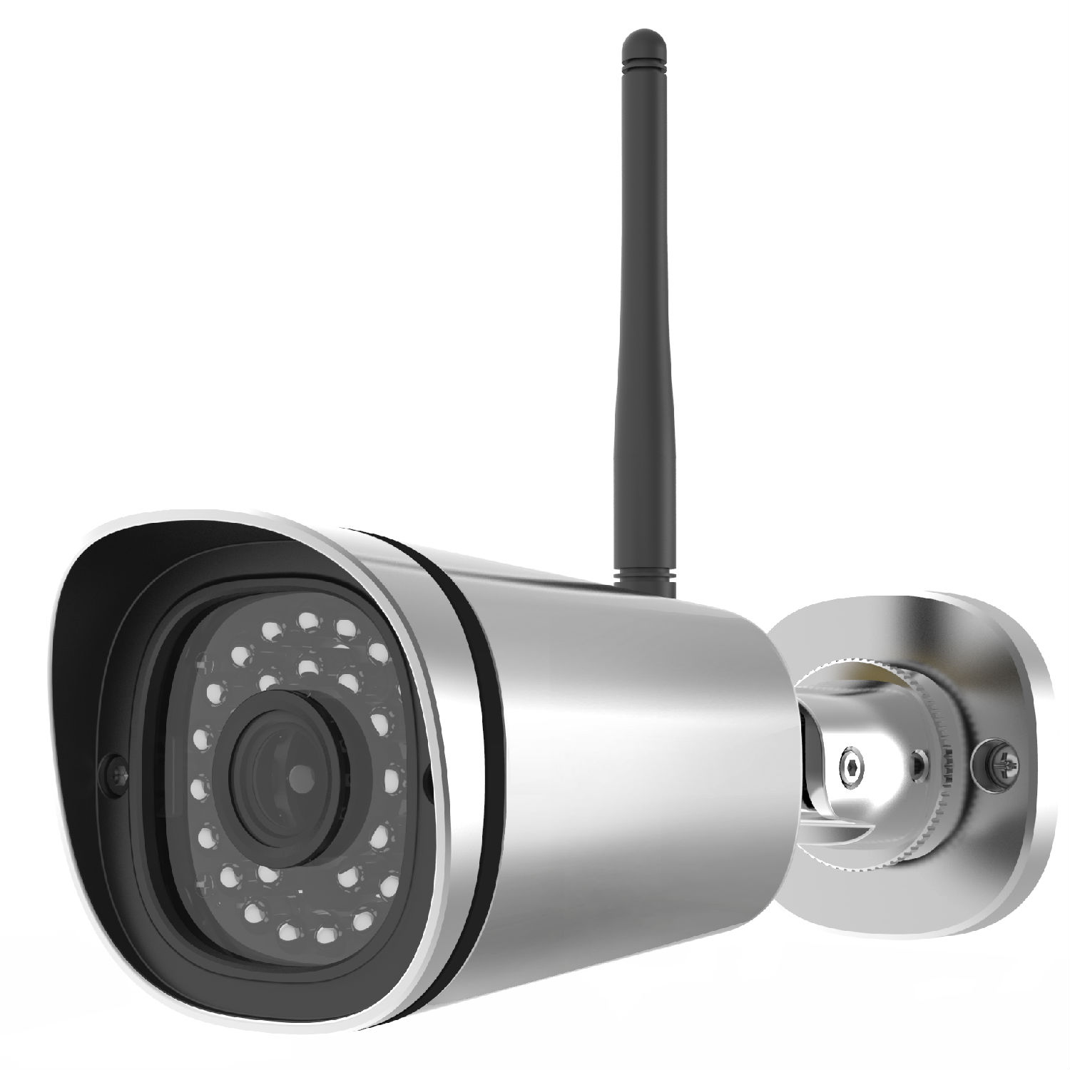 Highlighted here is a silvery IP camera solution for outdoor use. It comes in a wide viewing angle for users to capture images from every corner easily. The excellent night vision function ensures total protection at night. With its high definition feature, this quality device helps to bring clear videos to your desktop or smartphone linked to a Wi-Fi network.